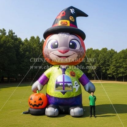 Bring Halloween spirit to life with our Cartoon3-270 Halloween Witch Rabbit Inflatable Cartoons. This towering character features a friendly rabbit dressed in a classic witch hat and festive outfit, complete with seasonal graphics that instantly set the mood for autumn events. Designed as a decorative showpiece rather than a ride, it’s perfect for entrances, plazas, pumpkin patches, school fairs, shopping centers, and photo ops during Halloween promotions.