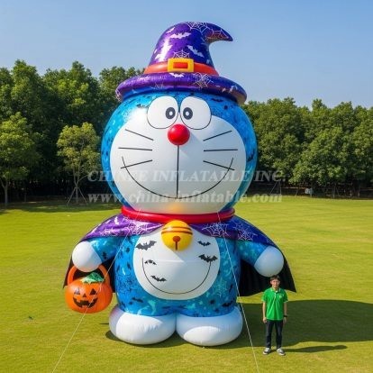 Make a bold, playful statement this season with the Cartoon3-299 Doraemon Halloween Inflatable Cartoon from Chinee Inflatables. This towering decorative piece features a beloved blue cat character dressed in a wizard hat and cape, complete with spiderweb graphics and a pumpkin prop—instantly setting a festive mood for Halloween events, brand activations, school fairs, and city plazas. Designed as a display inflatable (not for bouncing), it draws attention from a distance and creates an irresistible photo-op that boosts foot traffic and social sharing.