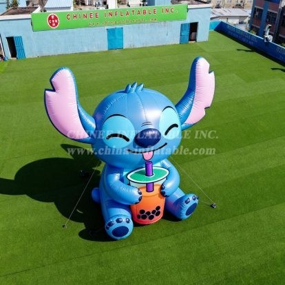 Bring irresistible charm to your next event with the Cartoon3-447 Lilo & Stitch Inflatable Cartoons by Chinee Inflatables Inc. This giant, freestanding character display features a cheerful blue figure seated and holding a colorful drink, instantly drawing attention from every angle. Designed as a decorative inflatable (not for bouncing), it is perfect for grand openings, brand activations, festivals, and photo ops.
