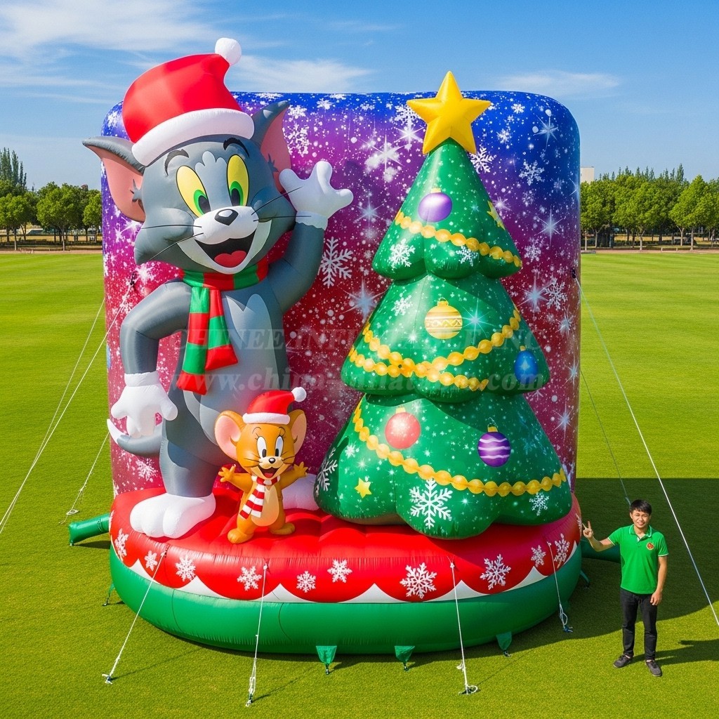Bring festive charm to your venue with the Cartoon3-559 Tom and Jerry Christmas Inflatable Cartoons by Chinee Inflatables. This eye‑catching display features cheerful characters in Santa hats beside a beautifully decorated Christmas tree topped with a star and ornaments—perfect for drawing attention at malls, town squares, winter festivals, school fairs, or rental setups. Crafted from heavy‑duty, commercial‑grade PVC tarpaulin with reinforced stitching, this unit is built to withstand repeated outdoor use while maintaining vivid color and crisp artwork.
