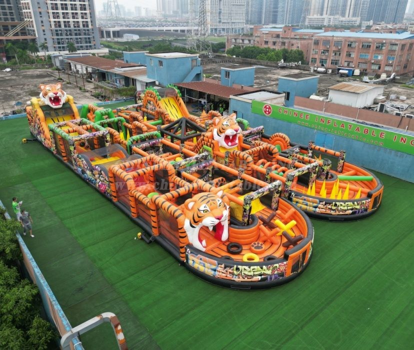 CR2-242 Tiger Theme Challenging Run Giant Inflatable Obstacle Courses