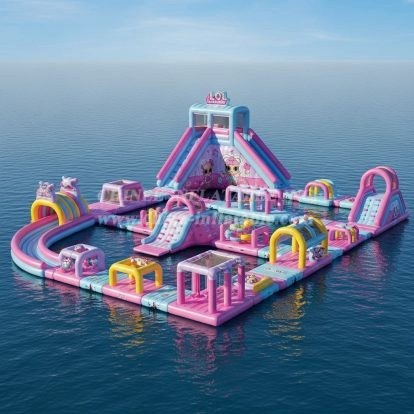 Chinee utilise un matériau personnalisé anti-UV et résistant à la chaleur, ce qui prolonge la durée de vie du parc aquatique flottant de 30% à 50% par rapport au matériau normal que la plupart des fournisseurs ont utilisé, notamment dans les zones à forte exposition aux rayons UV et aux températures élevées.
