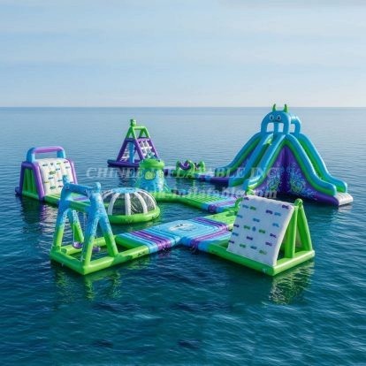 Chinee utilise un matériau personnalisé anti-UV et résistant à la chaleur, ce qui prolonge la durée de vie du parc aquatique flottant de 30% à 50% par rapport au matériau normal que la plupart des fournisseurs ont utilisé, notamment dans les zones à forte exposition aux rayons UV et aux températures élevées.