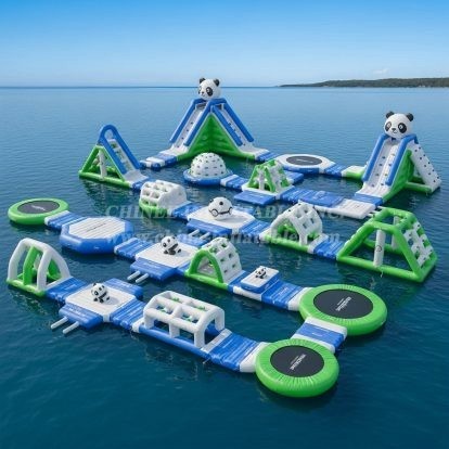 Chinee utilise un matériau personnalisé anti-UV et résistant à la chaleur, ce qui prolonge la durée de vie du parc aquatique flottant de 30% à 50% par rapport au matériau normal que la plupart des fournisseurs ont utilisé, notamment dans les zones à forte exposition aux rayons UV et aux températures élevées.