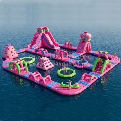 Chinee utilise un matériau personnalisé anti-UV et résistant à la chaleur, ce qui prolonge la durée de vie du parc aquatique flottant de 30% à 50% par rapport au matériau normal que la plupart des fournisseurs ont utilisé, notamment dans les zones à forte exposition aux rayons UV et aux températures élevées.