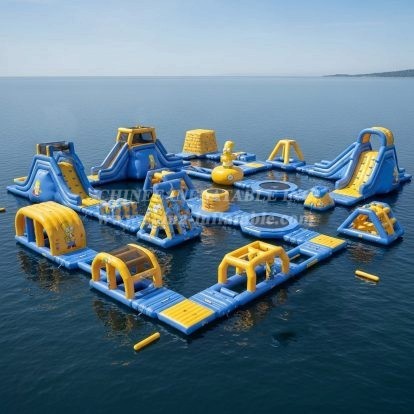 Chinee utilise un matériau personnalisé anti-UV et résistant à la chaleur, ce qui prolonge la durée de vie du parc aquatique flottant de 30% à 50% par rapport au matériau normal que la plupart des fournisseurs ont utilisé, notamment dans les zones à forte exposition aux rayons UV et aux températures élevées.