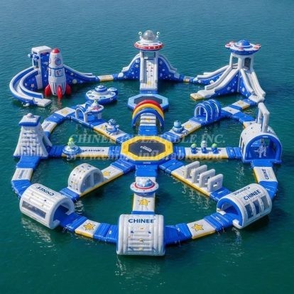Launch your venue into orbit with the S381 Space Theme Water Park by Chinee Inflatables. This large-scale floating attraction combines slides, climbs, balance beams, tunnels, and a central jump area in a striking space aesthetic featuring rockets, star patterns, and playful alien details. Designed for resorts, lakes, and waterfront operators, the S381 delivers a high‑capacity, high‑impact experience that keeps guests circulating through multiple challenge paths and photo‑worthy features.
