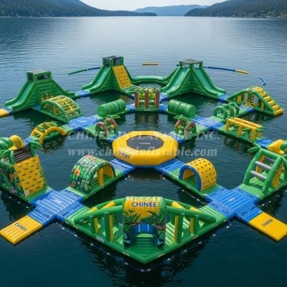 Chinee utilise un matériau personnalisé anti-UV et résistant à la chaleur, ce qui prolonge la durée de vie du parc aquatique flottant de 30% à 50% par rapport au matériau normal que la plupart des fournisseurs ont utilisé, notamment dans les zones à forte exposition aux rayons UV et aux températures élevées.