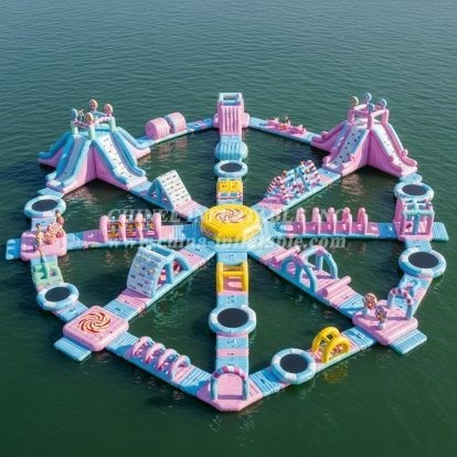 Chinee utilise un matériau personnalisé anti-UV et résistant à la chaleur, ce qui prolonge la durée de vie du parc aquatique flottant de 30% à 50% par rapport au matériau normal que la plupart des fournisseurs ont utilisé, notamment dans les zones à forte exposition aux rayons UV et aux températures élevées.