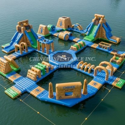 Chinee utilise un matériau personnalisé anti-UV et résistant à la chaleur, ce qui prolonge la durée de vie du parc aquatique flottant de 30% à 50% par rapport au matériau normal que la plupart des fournisseurs ont utilisé, notamment dans les zones à forte exposition aux rayons UV et aux températures élevées.