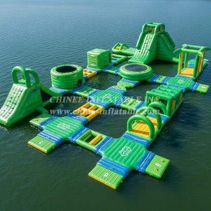 Chinee utilise un matériau personnalisé anti-UV et résistant à la chaleur, ce qui prolonge la durée de vie du parc aquatique flottant de 30% à 50% par rapport au matériau normal que la plupart des fournisseurs ont utilisé, notamment dans les zones à forte exposition aux rayons UV et aux températures élevées.
