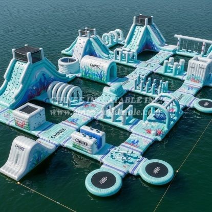 Chinee utilise un matériau personnalisé anti-UV et résistant à la chaleur, ce qui prolonge la durée de vie du parc aquatique flottant de 30% à 50% par rapport au matériau normal que la plupart des fournisseurs ont utilisé, notamment dans les zones à forte exposition aux rayons UV et aux températures élevées.