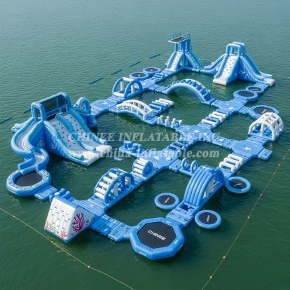 Chinee utilise un matériau personnalisé anti-UV et résistant à la chaleur, ce qui prolonge la durée de vie du parc aquatique flottant de 30% à 50% par rapport au matériau normal que la plupart des fournisseurs ont utilisé, notamment dans les zones à forte exposition aux rayons UV et aux températures élevées.