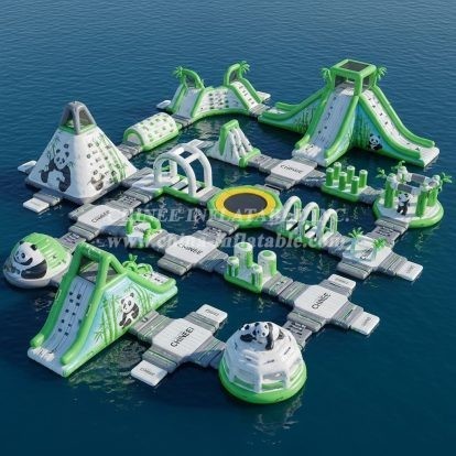 Chinee utilise un matériau personnalisé anti-UV et résistant à la chaleur, ce qui prolonge la durée de vie du parc aquatique flottant de 30% à 50% par rapport au matériau normal que la plupart des fournisseurs ont utilisé, notamment dans les zones à forte exposition aux rayons UV et aux températures élevées.