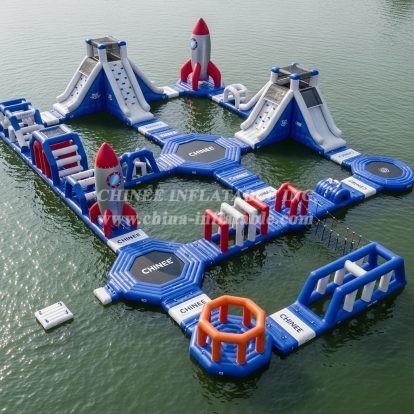 Chinee utilise un matériau personnalisé anti-UV et résistant à la chaleur, ce qui prolonge la durée de vie du parc aquatique flottant de 30% à 50% par rapport au matériau normal que la plupart des fournisseurs ont utilisé, notamment dans les zones à forte exposition aux rayons UV et aux températures élevées.