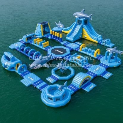 Chinee utilise un matériau personnalisé anti-UV et résistant à la chaleur, ce qui prolonge la durée de vie du parc aquatique flottant de 30% à 50% par rapport au matériau normal que la plupart des fournisseurs ont utilisé, notamment dans les zones à forte exposition aux rayons UV et aux températures élevées.