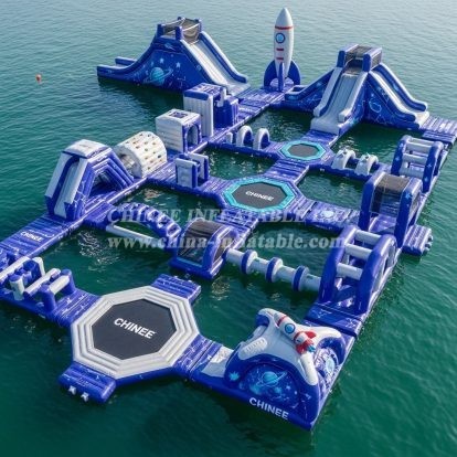 Chinee utilise un matériau personnalisé anti-UV et résistant à la chaleur, ce qui prolonge la durée de vie du parc aquatique flottant de 30% à 50% par rapport au matériau normal que la plupart des fournisseurs ont utilisé, notamment dans les zones à forte exposition aux rayons UV et aux températures élevées.