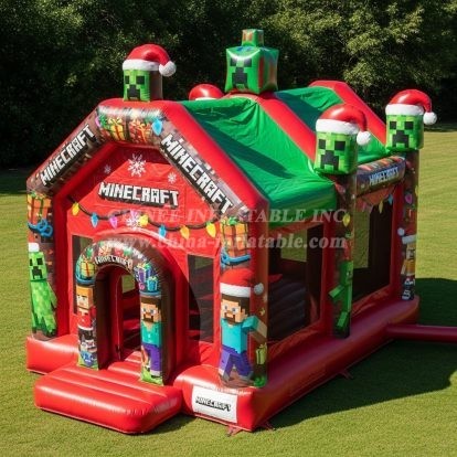Bring pixel-perfect fun to your next event with the T2-8593 Minecraft Theme Inflatable Bouncer. Designed to captivate gamers and holiday lovers alike, this festive bounce house features bold block-style graphics, cheerful garlands, and Creeper accents wearing Santa hats. The spacious jumping area invites kids to bounce, play, and burn energy safely, while mesh windows provide excellent ventilation and clear visibility for parents and operators.