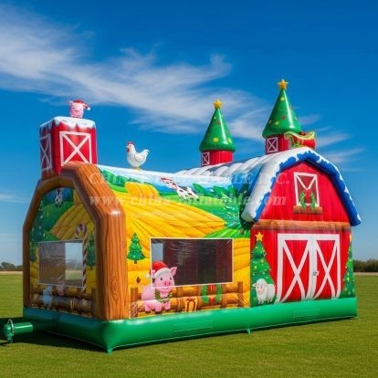 Bring holiday cheer to the countryside with our Farm Barn Christmas Theme Inflatable Bouncer. Styled like a red barn wrapped in winter accents, it features festive evergreens, snowy eaves, and friendly farm animals that invite kids to jump, play, and imagine. Large mesh windows on both sides provide excellent airflow and visibility, while the enclosed bounce area keeps participants safely inside. Built for heavy-duty commercial use, this unit uses premium, lead-free PVC vinyl with reinforced stitching at all high-stress points. A fully welded floor, interior safety netting, and soft, inflatable entrance ramp help ensure confident operation for rental fleets and event organizers. Set-up is quick with an included blower, anchor points, and durable D-rings for secure staking or sandbagging, making it ideal for schools, churches, winter festivals, farm-themed events, and community celebrations. As a manufacturer since 1998, Chinee Inflatables offers full customization—adjust colors, add logos, or incorporate themed signage to match your venue or brand. We also support multiple sizes to fit indoor gyms, outdoor fields, or backyard parties. Easy-to-clean surfaces and a compact roll-up size simplify transport and maintenance between events. Choose a bouncer that stands out visually and performs reliably season after season. Contact our team in Guangzhou for quotes, shipping options, and global service. Website: www.china-inflatable.com | Email: [email protected].
