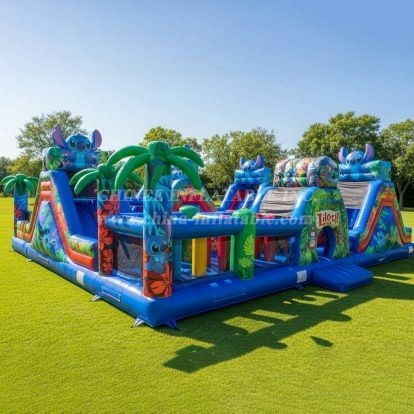 Notre technologie de couture est une double couture avec une couture quadruple au point de stress inférieur, nous prenons soin de tous ces détails avec des barres renforcées supplémentaires pour garantir qu'il n'y ait aucun problème lorsque les clients les utilisent, assurant que les gonflables ont une durée de vie de plus de 3 ans.