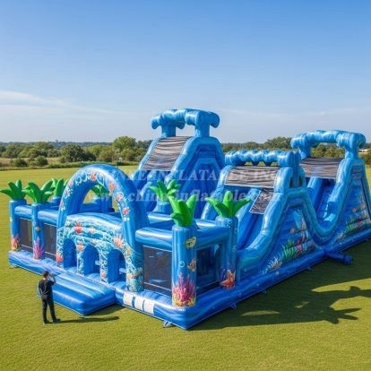 Notre technologie de couture est une double couture avec une couture quadruple au point de stress inférieur, nous prenons soin de tous ces détails avec des barres renforcées supplémentaires pour garantir qu'il n'y ait aucun problème lorsque les clients les utilisent, assurant que les gonflables ont une durée de vie de plus de 3 ans.