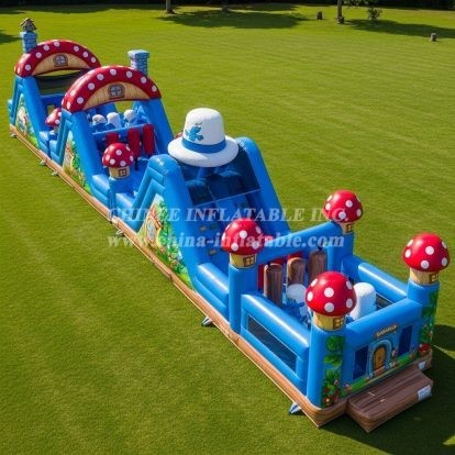 T7-4421 The Smurfs Theme Inflatable Obstacle Course