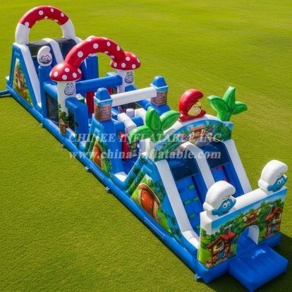 T7-4422 The Smurfs Theme Inflatable Obstacle Course