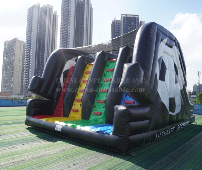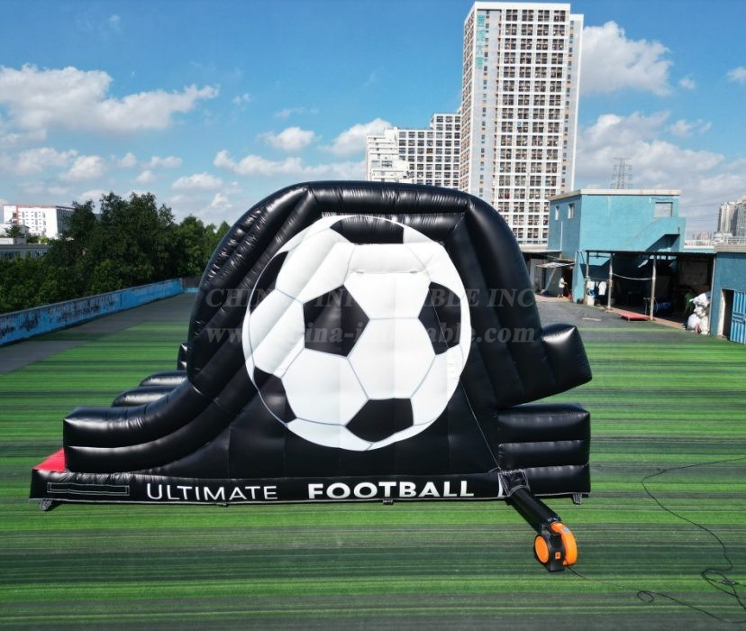This slide is an absolute showstopper, designed to handle crowds and keep the excitement level at its peak. Four riders can race simultaneously down the vibrant, colorful lanes, making it the perfect centerpiece for any large event. The bold black structure combined with the giant soccer ball details creates a visually stunning attraction for all sports fans.