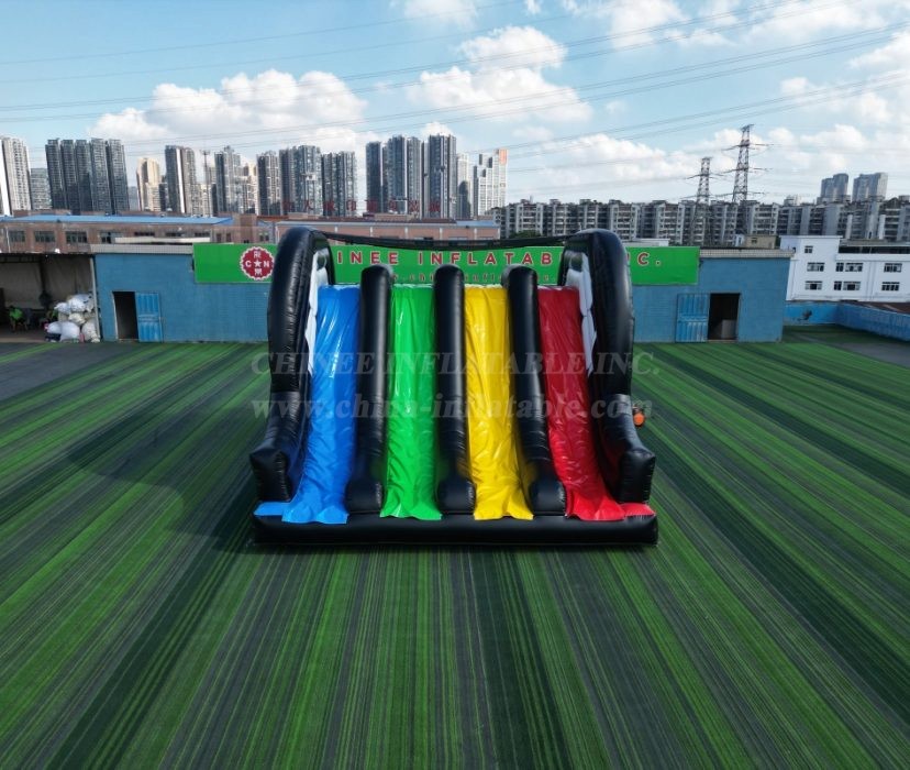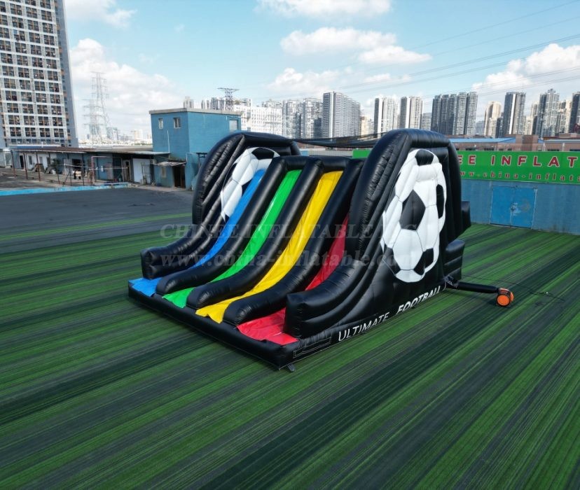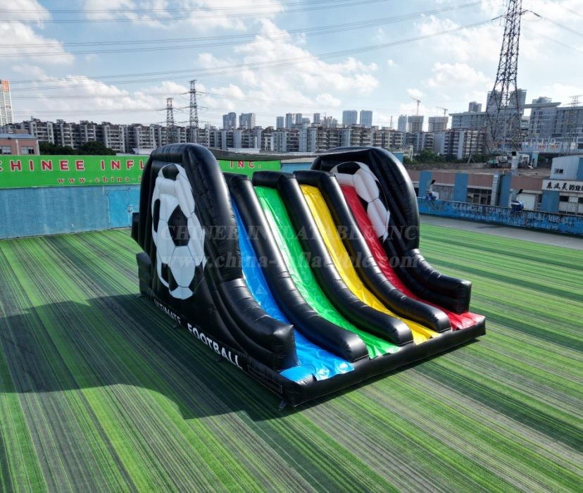 Double the lanes, double the fun! Get ready for high-speed, competitive action with our incredible 4-Lane Soccer Themed Inflatable Slide, manufactured by Chinee Inflatables.