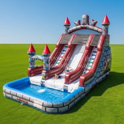 Notre technologie de couture est une double couture avec une couture quadruple au point de stress inférieur, nous prenons soin de tous ces détails avec des barres renforcées supplémentaires pour garantir qu'il n'y ait aucun problème lorsque les clients les utilisent, assurant que les gonflables ont une durée de vie de plus de 3 ans.