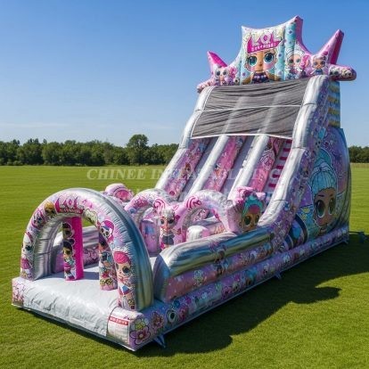 Make every event pop with the T8-8736 L.O.L. Surprise Inflatable Dry Slide from Chinee Inflatables. Bursting with vibrant artwork of fan‑favorite L.O.L. characters, this tall slide features a fun obstacle‑style entry, protective mesh on the climb and slide lanes, and a wide landing area for smooth, confident finishes. It’s a show‑stopping centerpiece for school fairs, community festivals, rental fleets, and backyard parties.
