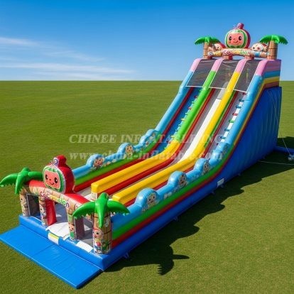 Bring endless fun to parties and events with the T8-8816 CoComelon Inflatable Slide! Featuring bright colors, beloved CoComelon characters, playful monkeys, and tropical palm tree accents, this giant slide is perfect for entertaining kids of all ages. Built with durable, high-quality materials by Chinee Inflatables, it offers safe climbing and exhilarating sliding experiences, making it an ideal centerpiece for outdoor celebrations or commercial rental businesses.