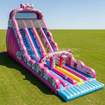 Delight young fans with the T8-8877 L.O.L.SURPRISE Inflatable Dry Slide, featuring vibrant colors and adorable character graphics. This tall, multi-lane slide offers an exciting descent that’s perfect for parties and events. Built from high-quality materials by Chinee Inflatables Inc., it ensures durability, safety, and hours of fun. Its eye-catching design will be the centerpiece of any celebration, making it a fantastic addition for inflatable rental businesses or personal recreational use.