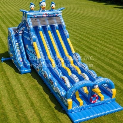 Bring the magic of Disney to your event with the T8-8882 Donald Duck Inflatable Dry Slide! This vibrant blue slide features multiple lanes for exhilarating races and the beloved Donald Duck character proudly displayed at the top. Crafted from durable, high-quality materials by Chinee Inflatables Inc., it’s perfect for festivals, parties, and family fun days. Easy to set up and built for hours of entertainment, this inflatable slide delivers unforgettable fun for kids and adults alike.