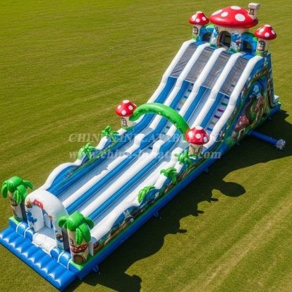 Experience thrilling fun with the T8-8957 Mushroom Inflatable Slide from Chinee Inflatables. This vibrant slide features whimsical mushroom towers, tropical palm accents, and a lush jungle-inspired design. Perfect for large outdoor events, it offers multiple slide lanes for nonstop excitement. Built with durable materials and eye-catching details, it’s ideal for entertaining crowds while ensuring safety and high performance for hours of active play.