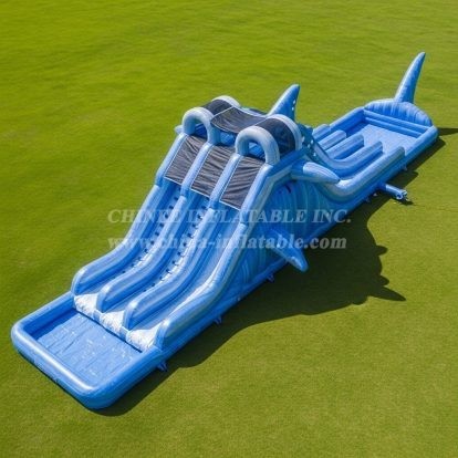 Dive into thrilling aquatic adventures with the T8-8989 Shark Inflatable Water Slide from Chinee Inflatables Inc. Featuring a dynamic shark-themed design and dual sliding lanes, this inflatable promises endless excitement for water lovers. Perfect for summer events, beach resorts, or backyard fun, its vibrant ocean-inspired graphics and durable materials ensure both safety and visual appeal. Make your next party unforgettable with this high-quality, easy-to-set-up water slide!