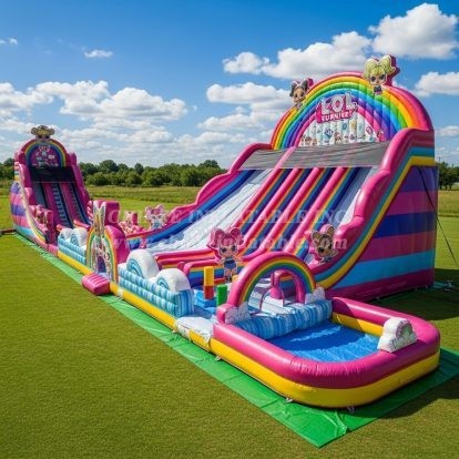 Bring excitement to your next event with the T8-8993 L.O.L.SURPRISE Inflatable Slide from Chinee Inflatables. Featuring vibrant rainbow-themed colors and beloved L.O.L.SURPRISE characters, this large inflatable slide offers hours of fun and adventure for kids. Made from durable, high-quality materials, it guarantees safety while delivering maximum enjoyment. Perfect for parties, fairs, and outdoor gatherings, this eye-catching inflatable will be the centerpiece that keeps everyone entertained.