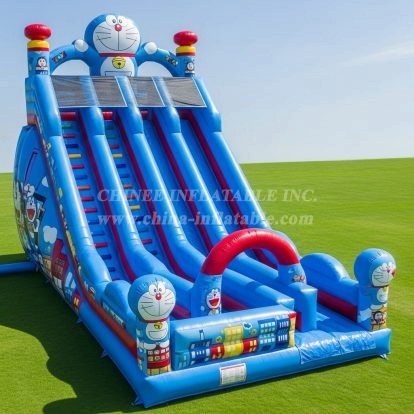 fun with the Doraemon Inflatable Slide, featuring vibrant blue colors and iconic characters from the beloved series. This inflatable slide offers multiple lanes racing friends and family, making it perfect for parties and outdoor events. Crafted for safety and endless entertainment, it's an eye-catching addition that will delight kids and fans of Dora everywhere.