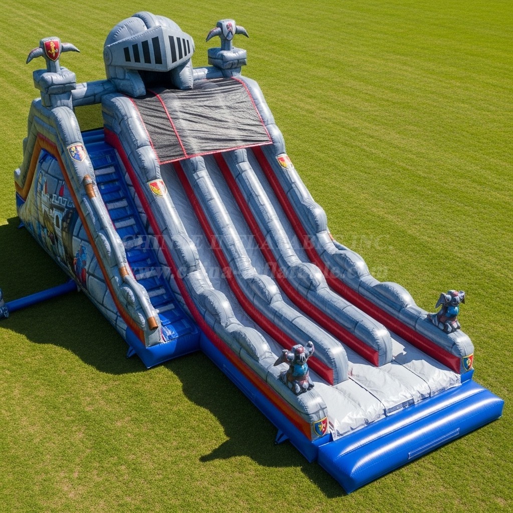 The Knight Theme Inflatable Slide combines thrilling triple lanes with a striking medieval castle design, perfect for exciting outdoor events. Its detailed knight helmet and shield accents bring an authentic fortress vibe. Ideal for birthday parties and themed festivals, this durable inflatable slide invites kids to climb, race, and slide in a fun and safe environment.