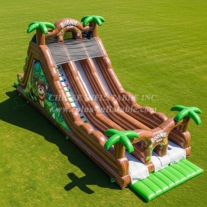 Experience thrilling fun with this Bear-themed inflatable water slide featuring vibrant jungle-inspired design and palm trees. Its dual sliding lanes provide exciting rides, while the climb ladder adds challenge and safety. Perfect for outdoor summer play areas, this durable inflatable combines adventure with nature-themed charm for kids and families.