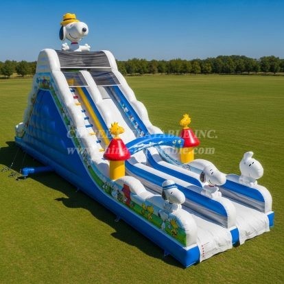 This Snoopy-themed inflatable water slide brings fun and excitement for kids and families alike. Featuring beloved Peanuts characters in vibrant colors, it offers dual sliding lanes with climbing steps for easy access. Perfect for outdoor water play, it combines charming design with durable construction to create the ultimate summer entertainment for event or park.