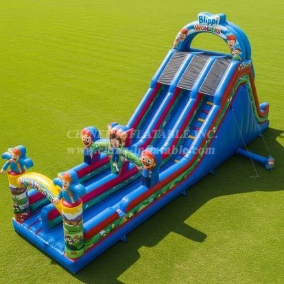 Experience endless fun with the vibrant Blippi Wonders Inflatable Water Slide. Designed with thrilling dual lanes and colorful character graphics, this water slide provides a splash-filled adventure for kids. Its sturdy build and safety features ensure hours of excitement, perfect for outdoor parties and play centers.