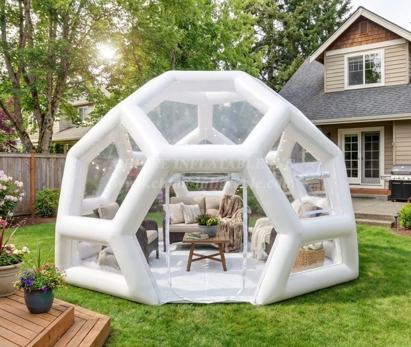 Translucent and half-transparent designs are also available. Additional variants include beach-friendly bubbles that put you right up next to the water, and tree-suspended versions that wrap around trunks and hover over the ground. Created from UV-reflecting recyclable materials, these structures can be set up in a matter of minutes and remain inflated via continuously-running silent pumps that automatically keep up a constant internal pressure.Transparent bubble tent is favored for its wide application for advertising, camping, holiday leisure outdoor activities, trade shows, exhibitions, promotion, outdoor shelter, etc.
