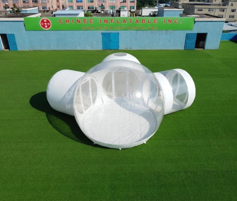 Translucent and half-transparent designs are also available. Additional variants include beach-friendly bubbles that put you right up next to the water, and tree-suspended versions that wrap around trunks and hover over the ground. Created from UV-reflecting recyclable materials, these structures can be set up in a matter of minutes and remain inflated via continuously-running silent pumps that automatically keep up a constant internal pressure.Transparent bubble tent is favored for its wide application for advertising, camping, holiday leisure outdoor activities, trade shows, exhibitions, promotion, outdoor shelter, etc.
